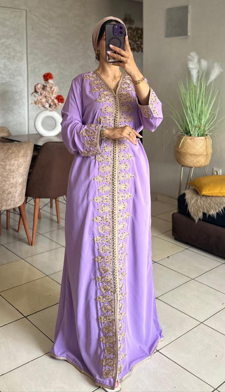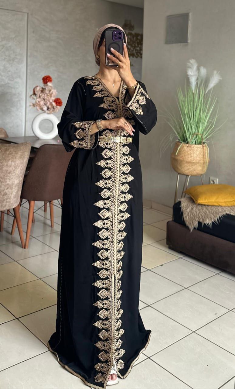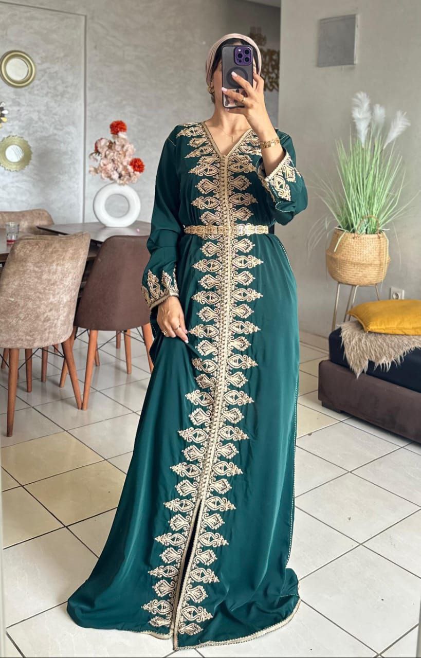 قفطان عين او عقدة تال لتحت مخدوم بالطرز بالتنبات ديال ليد توب كريب.