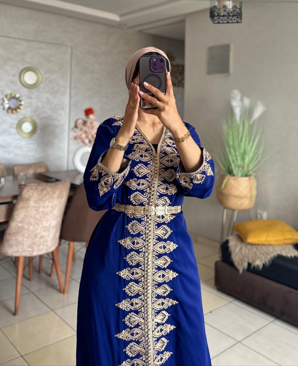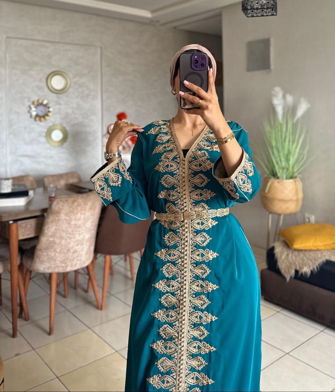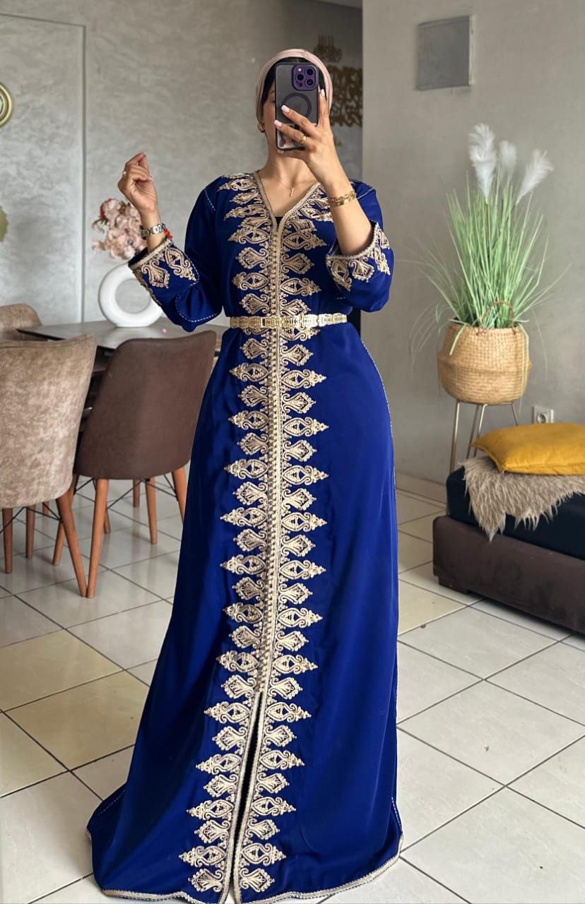 قفطان عين او عقدة تال لتحت مخدوم بالطرز بالتنبات ديال ليد توب كريب.