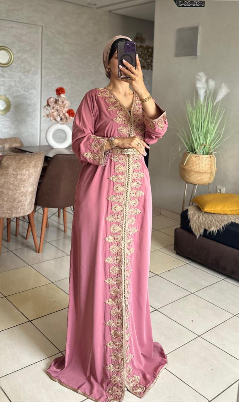 قفطان عين او عقدة تال لتحت مخدوم بالطرز بالتنبات ديال ليد توب كريب. روزة L. Xl. Xxl التمن. 399 درهم